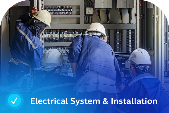 Our services cover all aspects of electrical systems and installation, with experience and an in-depth knowledge of all possible electrical system problems. We can set up installations in a variety of service premises, such as offices, banks, hospitals and broadcasting agencies, as well as an array of other industries. Installation is always carried out in the shortest time possible, for the benefit of our customers.